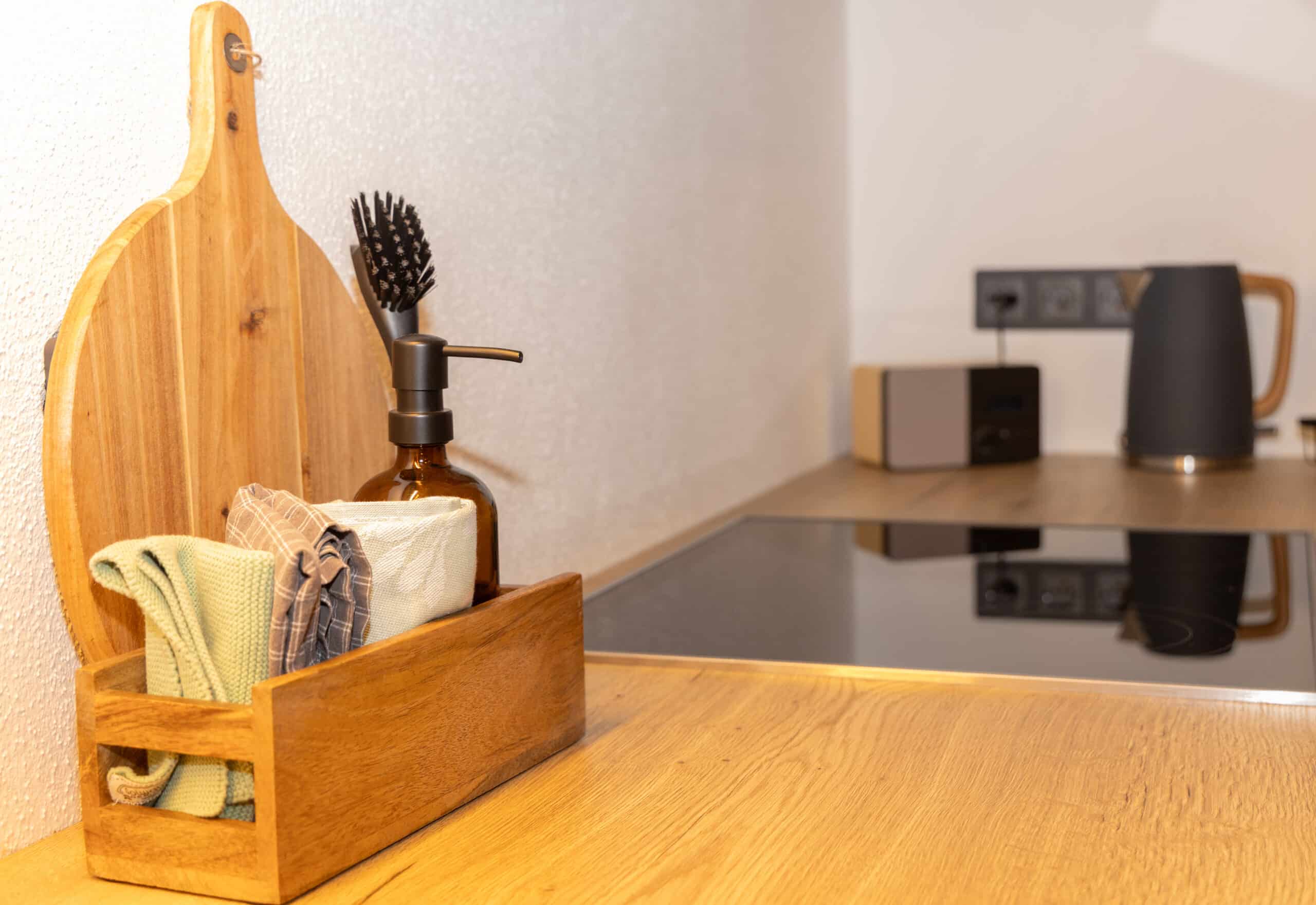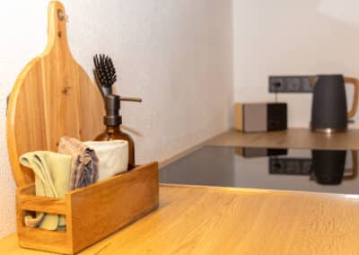 - vollausgestattete Küche mit: Kaffeemaschine, Toaster, Eierkocher, Mixer, Ceranfeld, Backofen, Spülmaschine Geschirrtücher