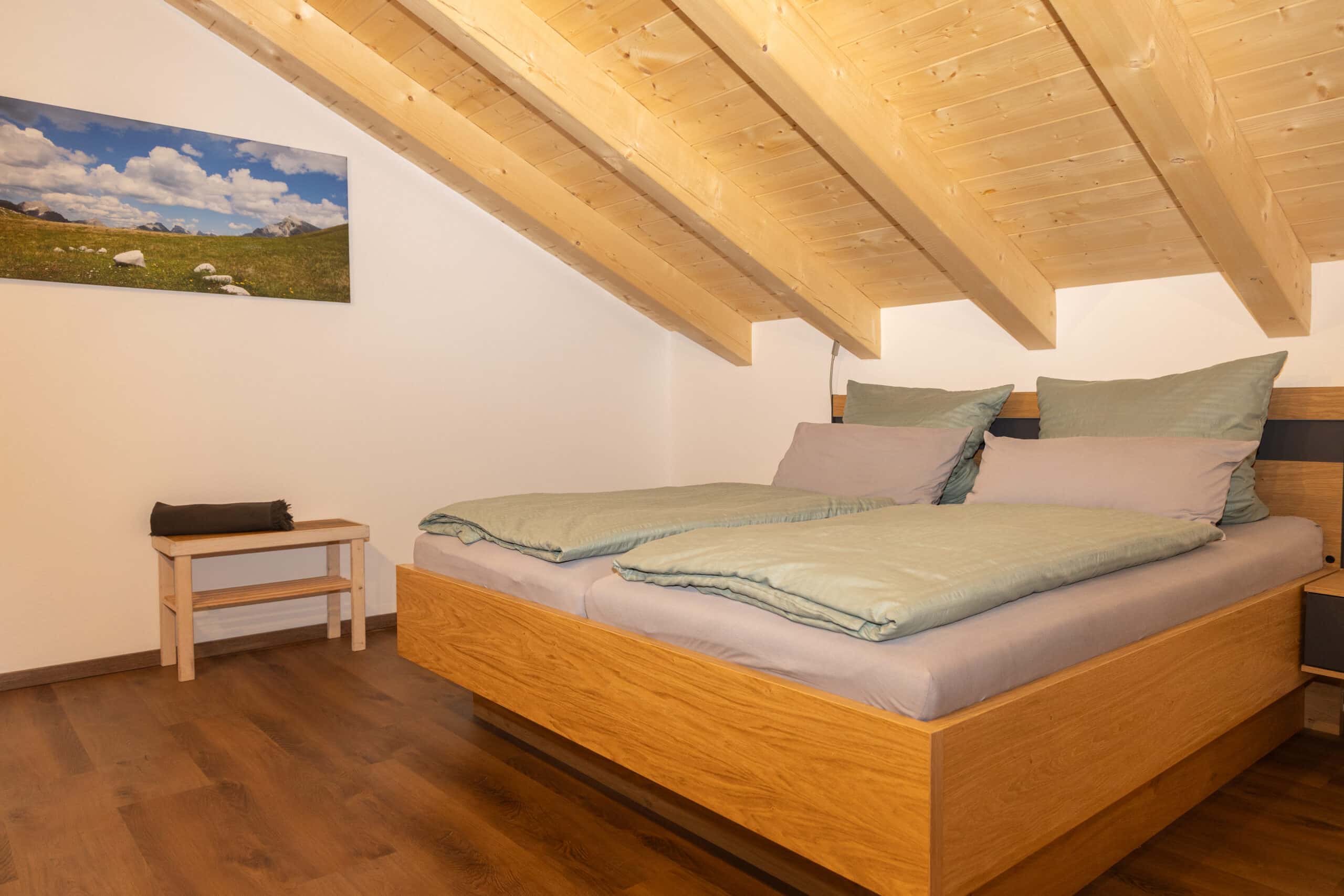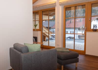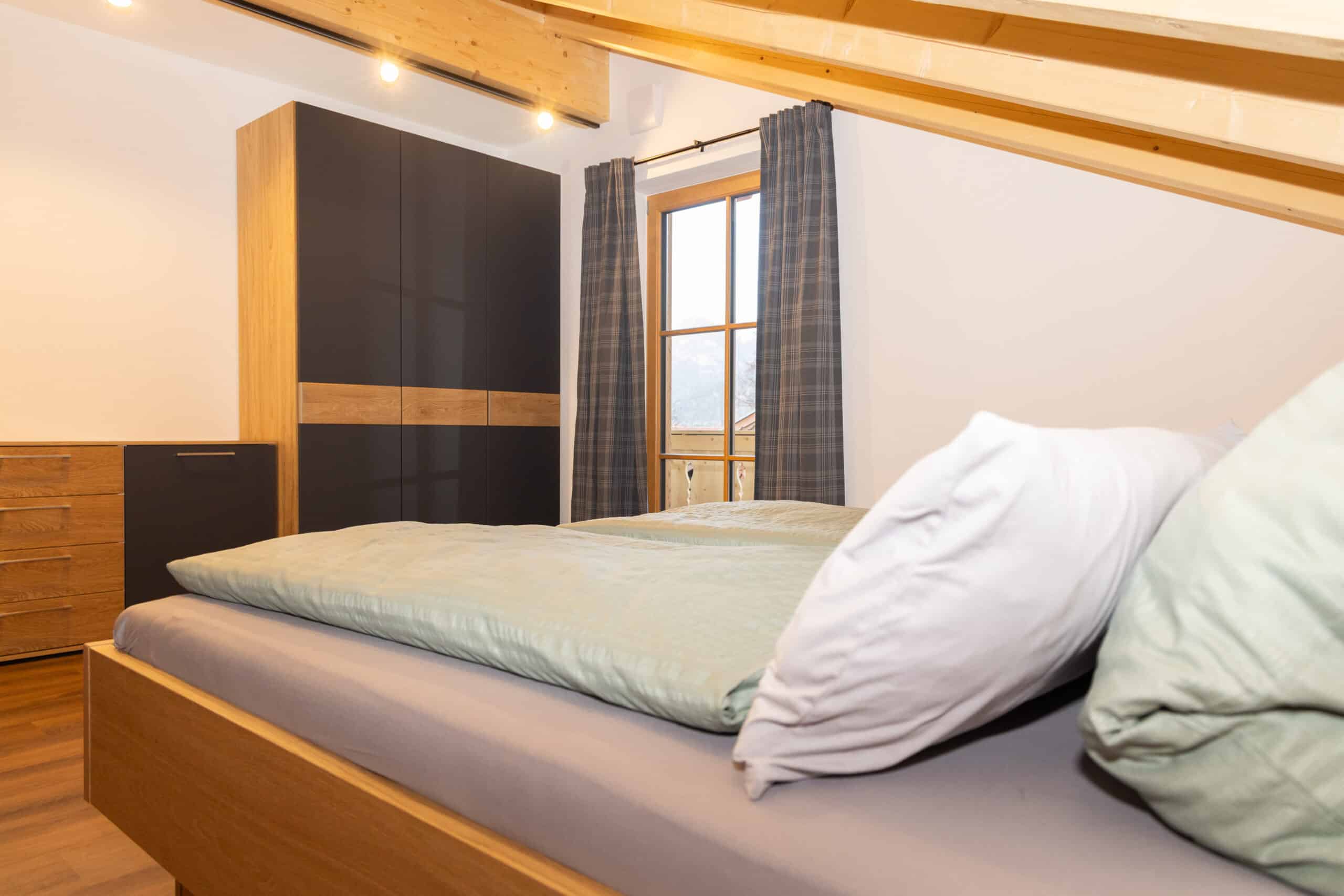 Freuen Sie sich auf zwei getrennte, großzügige Schlafzimmer mit Ost-Balkon. Genießen Sie den Sonnenaufgang direkt vom Bett aus – so beginnt der Tag in den Bergen auf besonders schöne Weise. Alle Balkone sind möbliert und laden dazu ein, die frische Alpenluft und die umliegende Natur in vollen Zügen zu genießen.